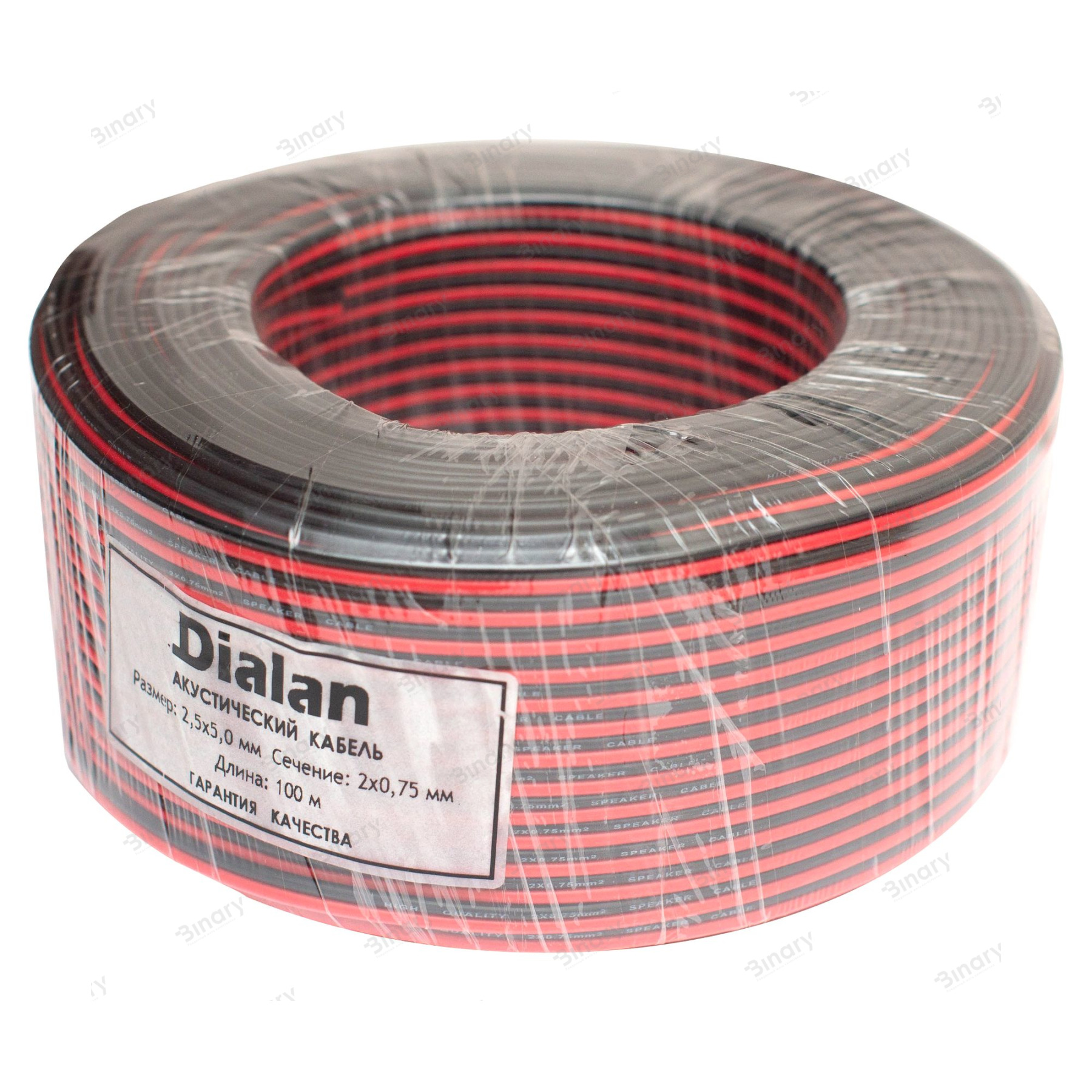 Багатожильний акустичний кабель від торгової марки Dialan для аудіо апаратури з двома провідниками перетином 0,75 мм. Провідник з 24 біметалевих жив, в міцної прозорої оболонці з ПВХ (полівінілхлорид). Так як кабель багатожильний, а оболонка досить гнучка, кабель можна прокладати в складних місцях згинаючи його в разі потреби. Кабель упакований в бухти по 100 м, в поліетиленовій захисній плівці.
