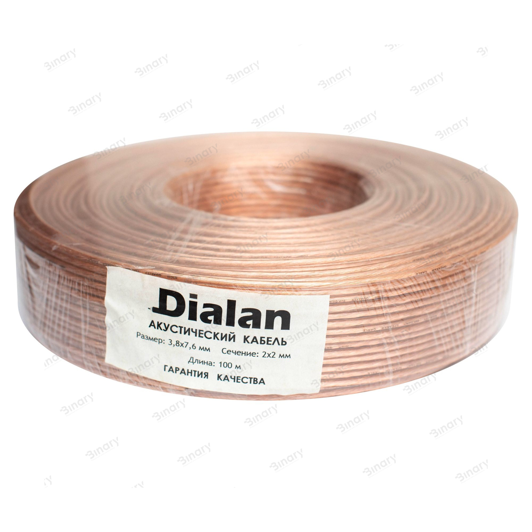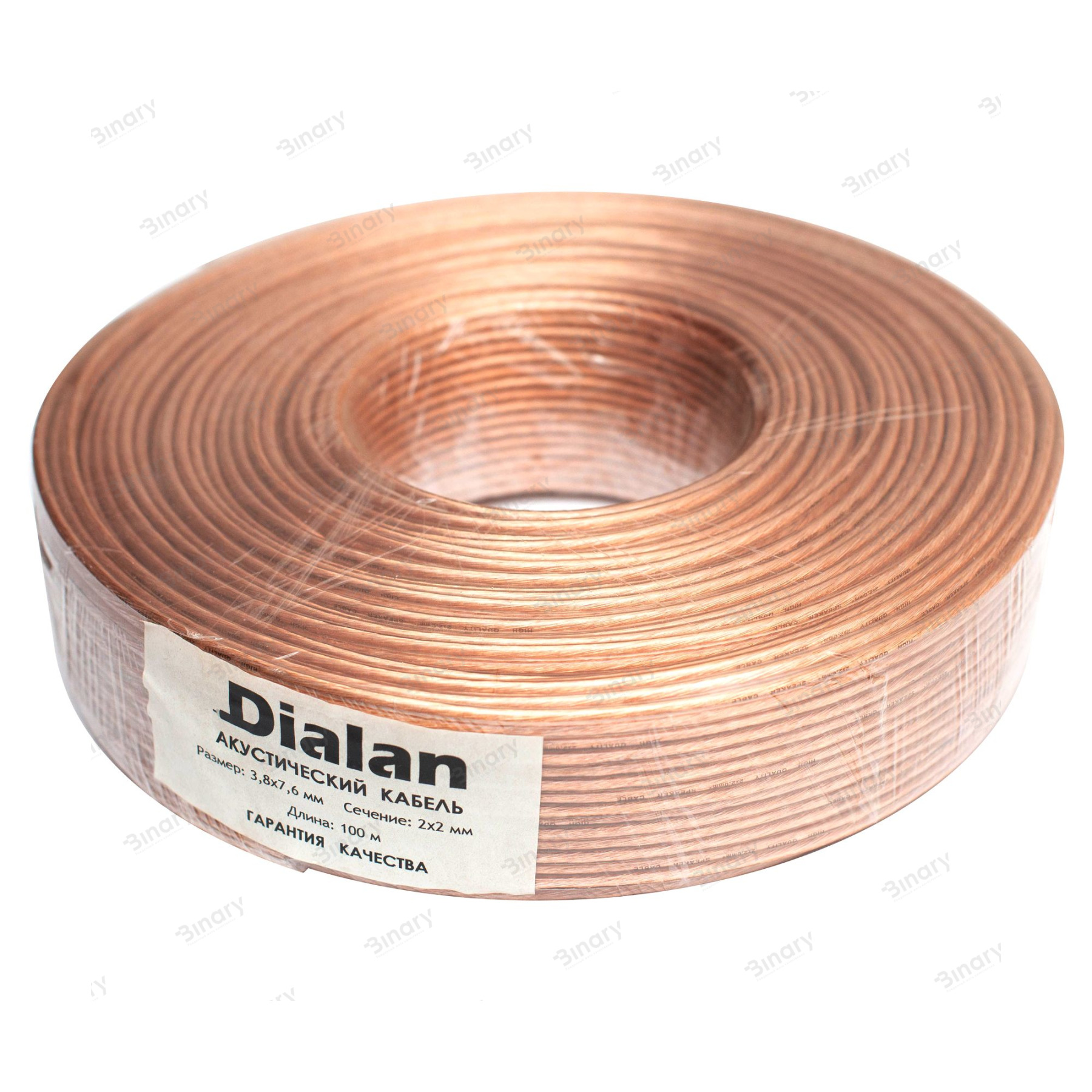 Багатожильний акустичний кабель від торгової марки Dialan для аудіо апаратури з двома провідниками перетином 2,00 мм. Провідник з 64 біметалевих жив, в міцної прозорої оболонці з ПВХ (полівінілхлорид). Так як кабель багатожильний, а оболонка досить гнучка, кабель можна прокладати в складних місцях згинаючи його в разі потреби. Кабель упакований в бухти по 100 м, в поліетиленовій захисній плівці.