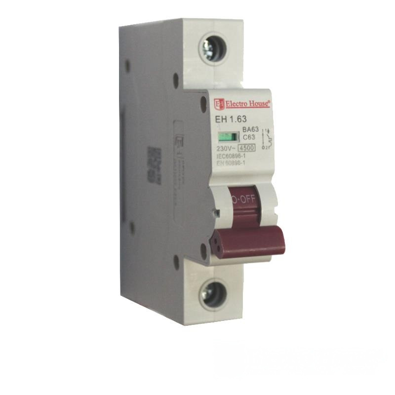Автоматичний вимикач EH - 1.63 є сучасним засобом для захисту від збитку, що заподіюється електричним струмом. Несправне устаткування, підключене в мережу, може стати причиною пожежі. Автоматичний вимикач засіче некоректний стан електромережі і миттєво відключить подання струму. Аналогічним чином він подіє, якщо станеться контакт людини з оголеним дротом. Таким чином цей автомат чудово захищає від пожеж і нещасних випадків. Автоматичний вимикач ElectroHouse виготовлений з білого пластика високої якості, стійкого до займання. Усі продукти ElectroHouse відрізняються міцністю, довговічністю і відповідають світовим стандартам якості.