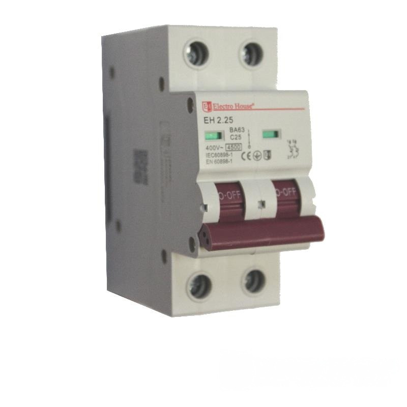 Автоматичний вимикач EH - 2.25 захисний виріб, який має бути встановлений в кожному приміщенні, для захисту від небезпечних обставин, пов'язаних з електричним струмом. Є запобіжником у разі пошкодженої ізоляції дроту, при несправному устаткуванні і запобігає займанню. Принцип роботи полягає у миттєвому відключенні подання струму, при критичних ситуаціях. Цей прилад виготовлений з високоякісного стійкого до вогню пластика білого кольору, що не тьмяніє і не тріскається. Така продукція довговічна і надійна і зобов'язана знаходиться в кожному приміщенні, вона убезпечить від займання вас і ваших близьких.