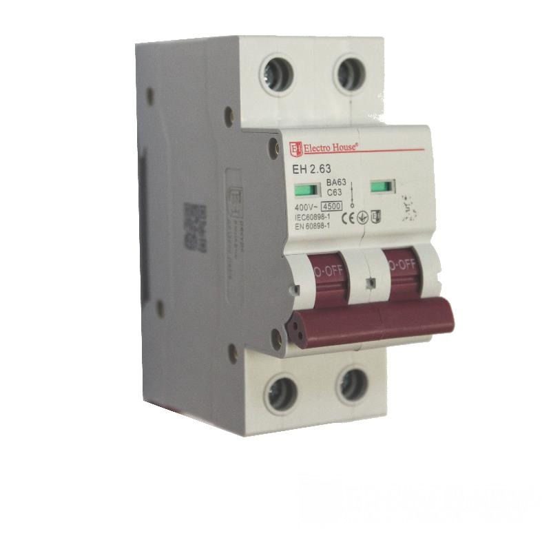 Автоматичний вимикач EH - 2.63 зможе захистити Вас і Ваше майно від можливого збитку, який може бути нанесений електричним струмом. Несправні побутові або виробничі електроприлади, підключені в мережу, можуть спровокувати займання. Також існує небезпека людських жертв у разі прямого контакту користувача з оголеним електропроводом. Автоматичний вимикач запобігає гіршому розвитку подій в обох описаних випадках, оскільки стежить за станом мережі і миттєво відключає подання струму у разі реєстрації будь-яких аномалій. Автомат EH - 2.63 є двополюсним, це означає, що він може контролювати стан двох електромереж. Пристрій виконаний з якісного білого пластика, стійкого до займання. Компанія ElectroHouse гарантує чудову якість товарів.