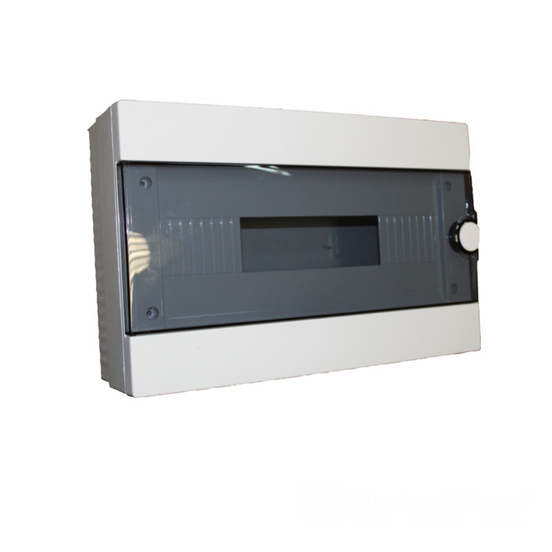 Бокс модульний для зовнішньої установки на 16 модулів EH-BM-008 від торгової марки ElectroHouse необхідний для монтажу різного устаткування, в тому числі автоматичних вимикачів, пристроїв захисного відключення. Виготовляється з якісного АБС-пластику, який переносить безліч зовнішніх впливів навколишнього середовища: температурних перепадів, вологості, вібрації і механічних впливів і т. д. По міжнародним вимогам відповідає ступеню захисту 40, що означає захист від дрібних частинок від одного міліметра. Зверху в нього напівпрозора кришка з полістиролу, яка оберігає від сторонніх втручань і одночасно має легкий доступ до пристроїв для спостереження за ними і для проведення будь-яких електромонтажних робіт. Бокс модульний на 16 модулів EH-BM-008 від українського виробника ElectroHouse має чудову сучасну форму і підходить під різний стиль інтер'єру.