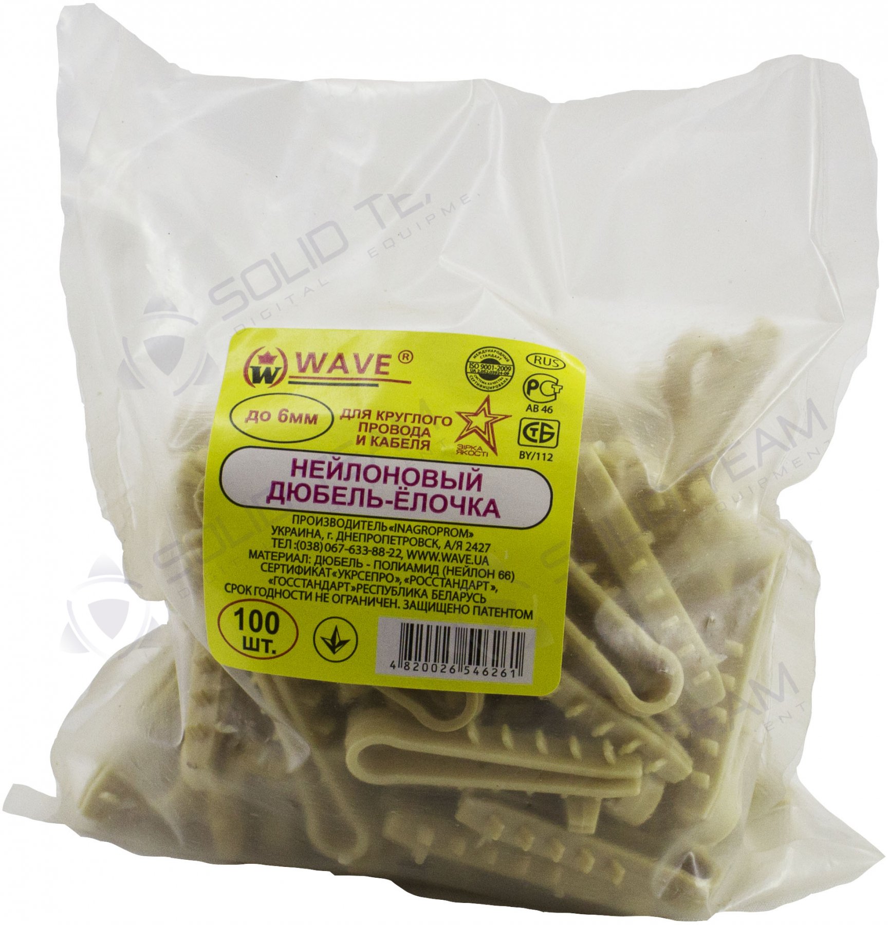 Дюбель - ялинка (зажим) 8 mm для кругл.каб 100 шт Н Е І Л О Н Використовується для швидкого кріплення проводу або кабелю до поверхні стін. В процесі монтажу попередньо в стіні свердлити отвір для дюбеля-ялинки. Дюбель замикається на оболонці провідника і фіксується в отворі.
