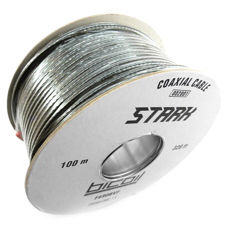 Коаксиальный кабель BiCoil F690BVF STARK CCS рекомендований для супутникового, ефірного, цифрового телебачення, а також для відеоспостереження. Може використовуватися в якості фідера зниження від приймальних антен, для з'єднання блоків розподілу сигналу, підключення до абонентської апаратурі та інших завданнях. Хмарно зовнішня оболонка виготовлена з ПВХ і має білий колір.