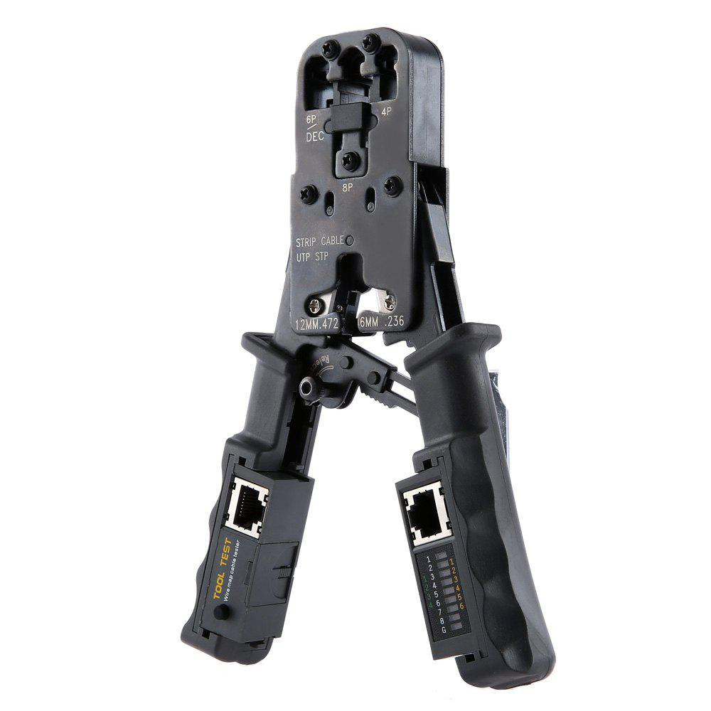 Інструмент (HT-022) призначений для обтиску роз'ємів 8p8c, 6p6c, 4p4c, а також для зняття ізоляції і зачистки телефонних кабелів. Довжина зачистки кабелю фіксована. Ручка виконана з антиковзаючого пластика. Тестер для перевірки кабелів типу UTP / FTP. Корпус виготовлений з вуглецевої оксидированной стали.