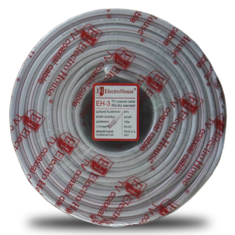 Кабель коаксіальний RG - 6U EH - 3 застосовується як для звичайного споживача, так і для великих компаній і різноманітних студій і різних підприємств підключення для отримання сигналів різних оборудовань. По своїй структурі є екраном, накладеним на сердечник, який відповідає за якісний прийом сигналу, двох шнурів, що знаходяться на одній осі, розділеними ізолюючим діелектриком, і усі знаходяться в спеціальному покритті з ПВХ шару білого кольору, що оберігає від несприятливих дій в не залежності від місця установки, будь то усередині приміщення, або зовні. Хорошими перевагами виступають як невисока собівартість продукту, так і невелика власна маса, що робить його популярним.