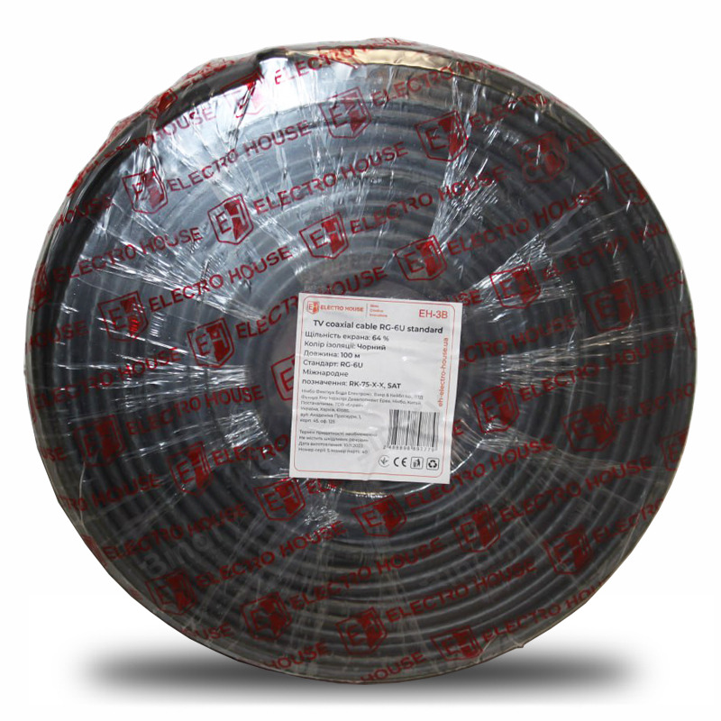 Кабель RG-6U 64% ССS 1,02 Мідна фольга 64 мідних жил ПВХ / чорний EH-3B бренду Electro House призначений для застосування як в побутових цілях, так і на підприємствах для підключення різного мобільного і стаціонарного обладнання. Висока герметичність кабелю запобігає потраплянню вологи й дозволяє проводити монтаж і в приміщенні та на відкритих просторах. Коаксіальний провід RG-6U EH-3B завдяки своїм характеристикам відрізняється високою якістю і тривалим терміном експлуатації. Технічно товар складається з центрального провідника покритого матеріалом діелектрика і загорнутого в екранувальне від радіоперешкод обплетення з 64 мідних жил, а так само мідну фольгу. Зовнішня оболонка, надійно захищає коаксіальний кабель від несприятливих зовнішніх впливів, виготовлена з полівінілхлориду і має чорний колір. Хвильовий опір -75 Ом, ємність 47,2 пФ/м.