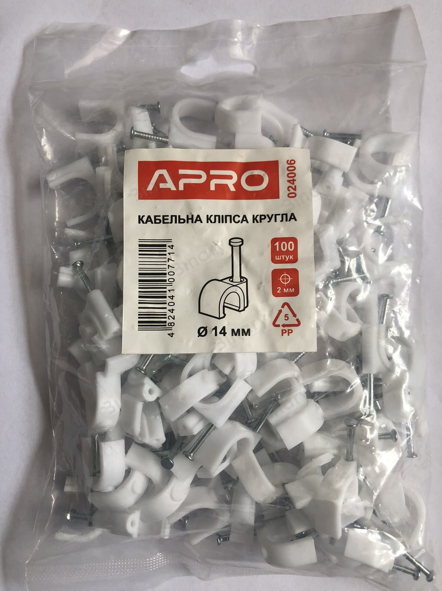 Кліпси для кріплення круглих кабелів, проводів і т.д. Можливе кріплення до дерева, гіпсокартону, до швах цегляної кладки, до штукатурки, бетону, цегли й т.д.