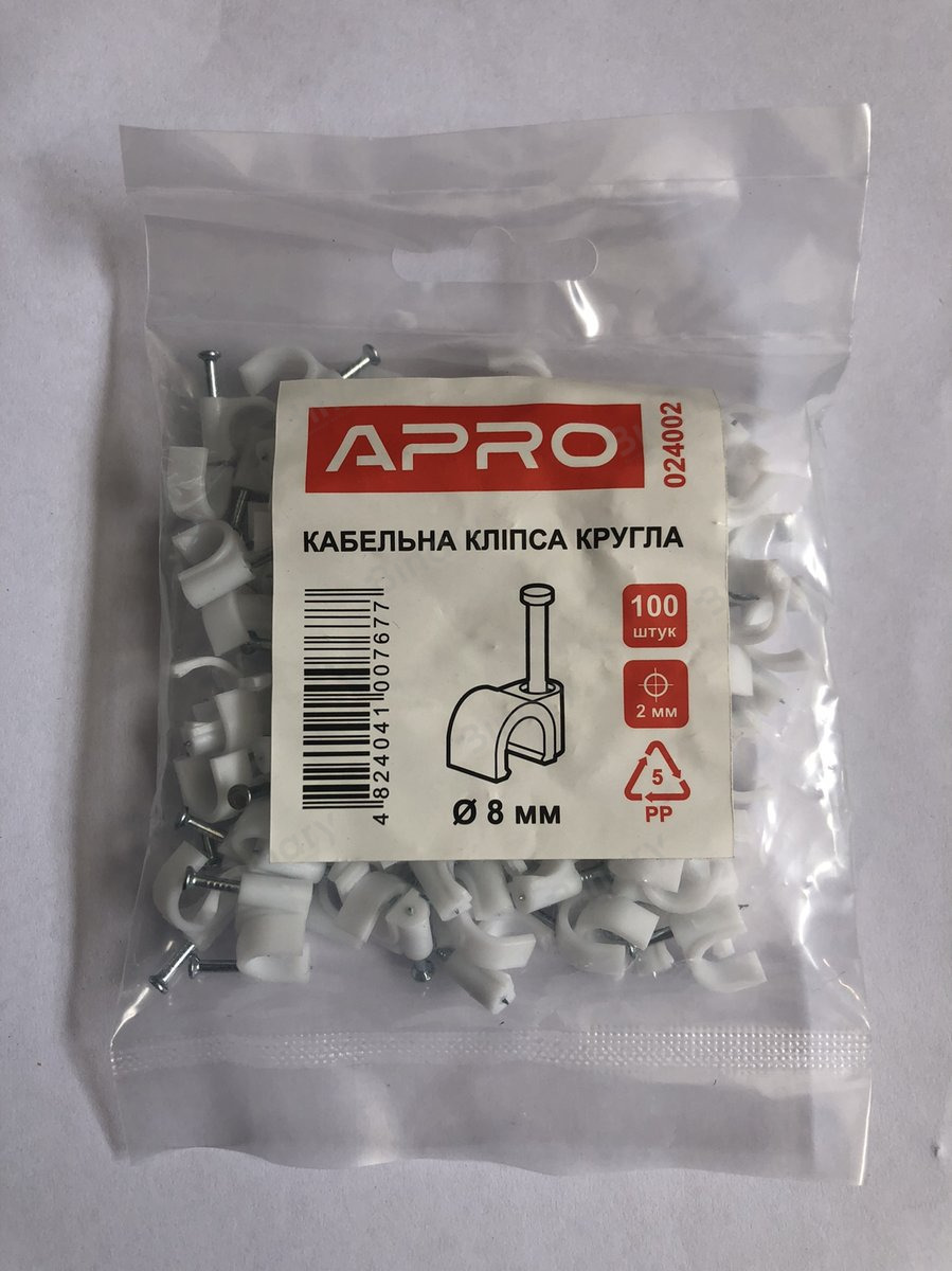 Кліпси для кріплення круглих кабелів, проводів і т.д. Можливе кріплення до дерева, гіпсокартону, до швах цегляної кладки, до штукатурки, бетону, цегли й т.д.