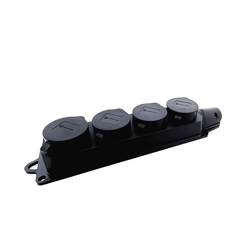 Колодка із заземленням і кришкою на 4 гнізда Каучук застосовується у виробничих або інших сферах, де умови експлуатації можна назвати агресивними. Кожна з розеток обладнана кришкою, що виключає за відсутності вилки споживача попадання сторонніх предметів в струмоведучі частини. Також колодка EH-RB-W4 вологозахищена, бризки води, що потрапляють на конструкцію під будь-яким кутом, не заподіюють небезпечних наслідків. Усі затиски, клеми, гвинти надійно фіксують електропровід. Безпечна у використанні. Виконана в чорному кольорі. Може бути застосована в приміщеннях автомобільного миття, майстерень, на будівництвах, у виробничих цехах. Стійка до великих навантажень і перепадів мережі. Довговічна, до 40 000 гарантованих циклів. Виготовлена з удароміцного матеріалу який не боїться випадкових падінь, ударів. Прекрасний вибір якщо ви вирішили особисто зібрати високоякісний надійний подовжувач на усі випадки життя.