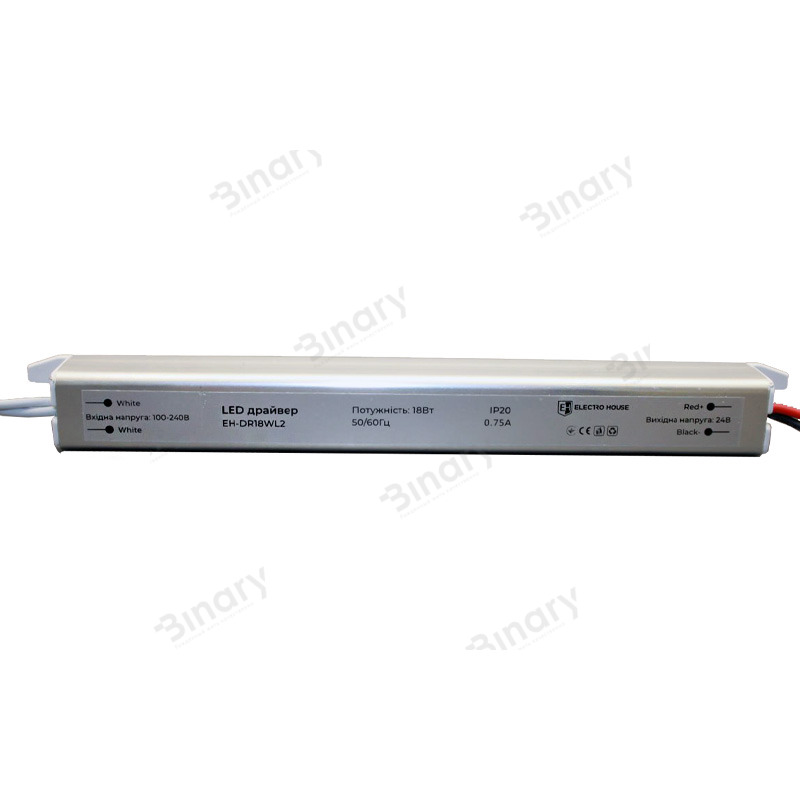 LED драйвер компактний 18 Вт 24 В (серія Тонка), гарантія 2 роки
