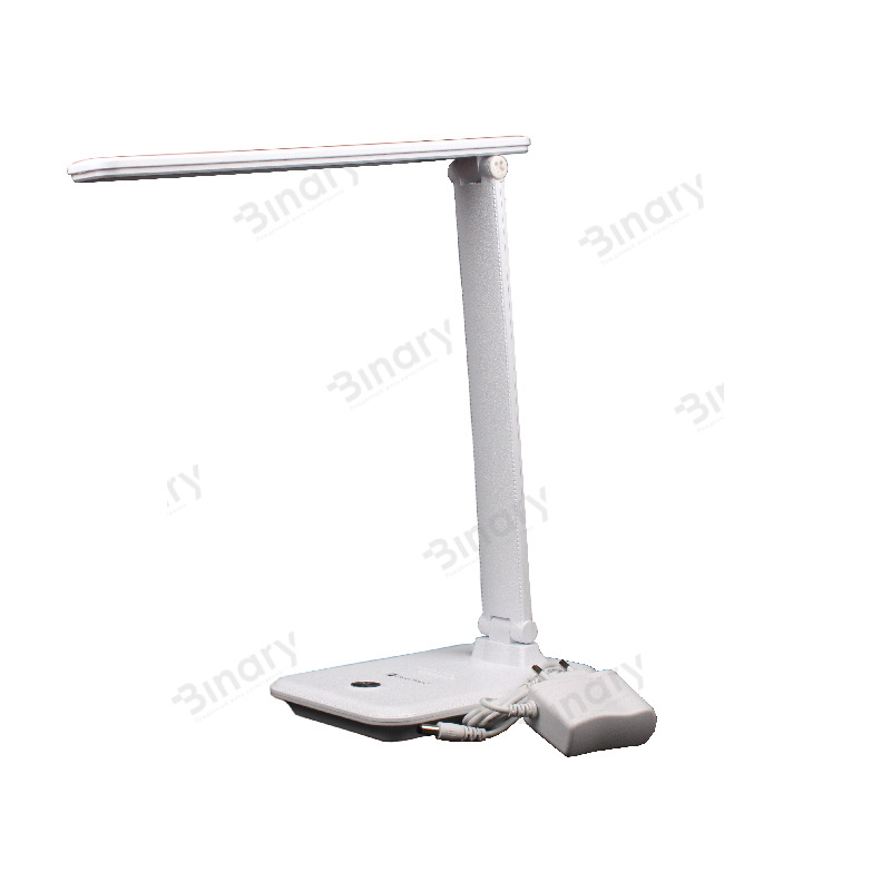 LED світильник настільний 10 Вт (2700К/4100К/6500К) 700 Лм Білий EH-LMT-03 від компанії ElectroHouse - стильна і економічна (всього 10W) заміна звичайних настільних ламп. Він стане не тільки незамінним предметом для роботи або навчання, а й прикрасить Ваш інтер'єр. Корпус виконаний з екологічно безпечного високоякісного пластику білого кольору. Зовнішнє покриття корпусу імітує шкіру. Щоб виготовити цей світильник і зробити його неймовірно функціональним були застосовані новітні технології та сучасні матеріали. Світильник має два поворотних вузла, які в широких межах дозволяють регулювати нахил лампи. Максимальний нахил нижнього поворотного вузла 900, а верхнього 1800. Якщо максимально скласти верхній поворотний вузол, то лампу можна використовувати і в якості нічника. Ви можете змінити не тільки нахил лампи і силу освітлення, але і колірну температуру. Максимальний світловий потік складає 700Лм, що відповідає лампі розжарювання потужністю 100W. Світильник має 3 режими колірної температури: холодне світло, тепле світло і нейтральний. Включення / вимикання, а також зміна яскравості і зміна колірної температури проводиться сенсорним вимикачем, який виконаний у формі круглої металевої кнопки. Утриманням кнопки змінюється рівень освітлення, а дотиком можна змінити колірну температуру. При тривалому натисканні кнопки яскравість зменшується, а при повторному тривалому натисканні вона буде збільшуватися. Встановлений режим залишається в пам'яті лампи і після виключення. Цей світильник не тільки красивий і функціональний, але і надійний. Він має дворічну гарантію і ресурс роботи 50000 годин. Комплектується блоком живлення, який легко підключається до роз'єму в задній частині корпусу. Довжина шнура блоку живлення - 140 сантиметрів.