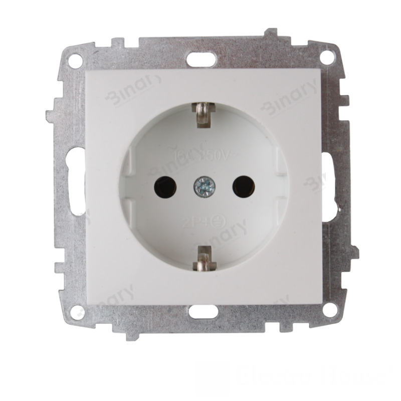 Механізм розетки із заземленням. Основною перевагою є обладнання заземлення, що виключить ураження струмом. Відповідає європейським стандартам та сертифікований в Україні. Термопластикова колодка витримує великі струми та не деформується при перепадах температури. Максимально допустимий номінальний струм 16 А та напруга 250 В із частотою 50 Гц. Має ступінь захисту IP 22. Краплі, що падають під кутом 15 градусів, не викликають наслідків. Стійкий до пробоїв мережі. Має великий ресурс роботи до 40 000 циклів. Під час виробництва не використовуються шкідливі та токсичні речовини, що забезпечує екологічну безпеку. Всі елементи фіксації дроту щільно посаджені в колодці і не потрібно з часом їх підтягувати. Для зручності обладнаний настановними кріпленнями, надійно фіксують у посадкових місцях стіни. Установку довірте спеціалісту. Перед монтажем обов'язково знеструмте мережу.