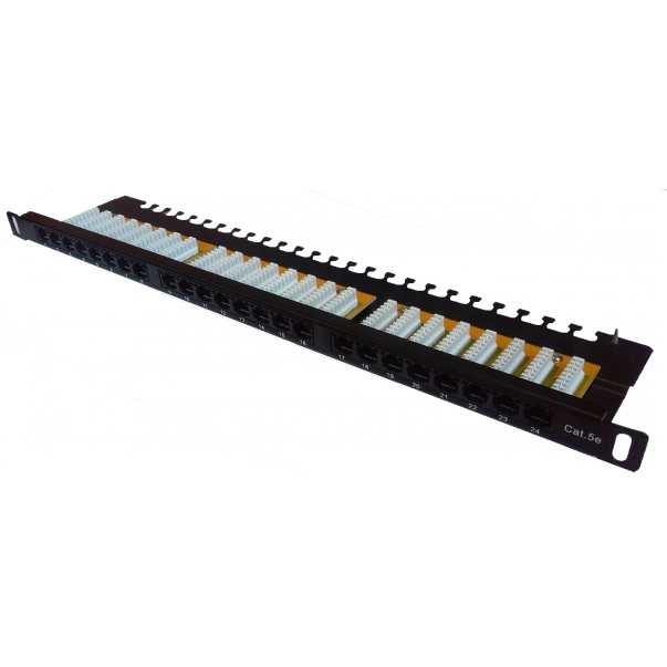 24-х портова патч-панель призначена для оброблення на ній кабелів різних підсистем СКС і підключення окремих складових мережі один до одного комутаційними шнурами.