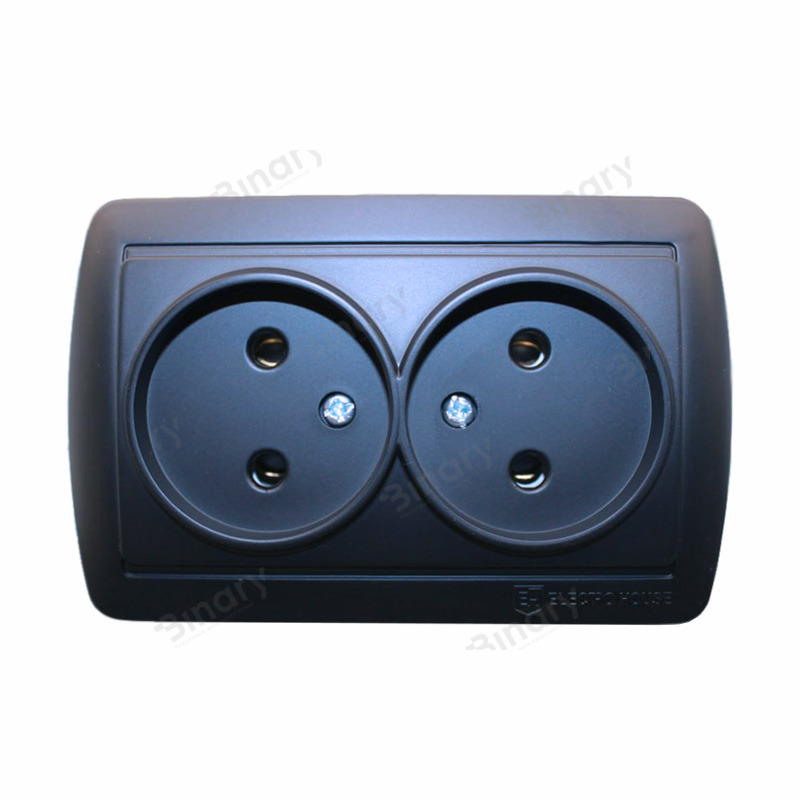 Розетка подвійна без заземлення 16 А Acura Графіт