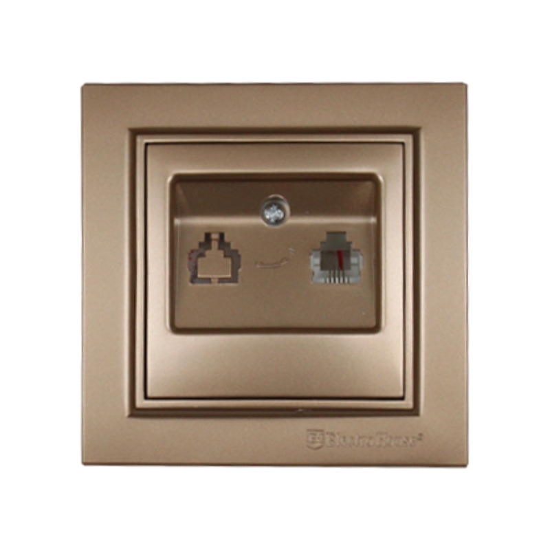 Розетка телефонна розкішно золота EH - 2112 - LG серії Enzo компанії ElectroHouse чудово підійде як для будинку, так і для офісу. Вона допоможе підкреслити Ваш тонкий смак в оформленні інтер'єру. Розетка Enzo розрахована на вбудований монтаж, а значить зажадає додаткового отвору в стіні, проте з її установкою без утруднень впорається кваліфікований фахівець. Вона дозволить Вам підключати телефонне устаткування.