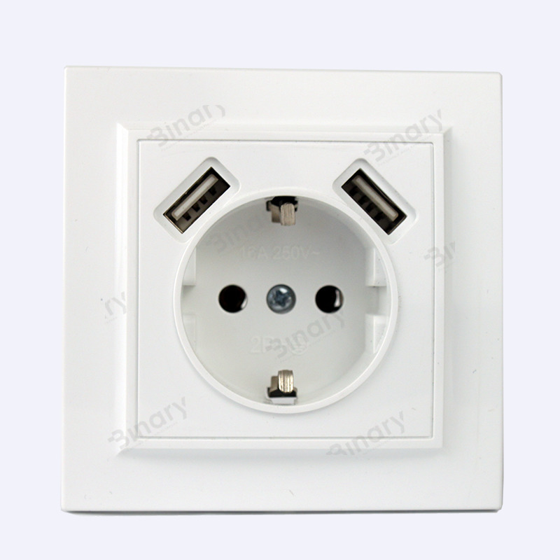 Розетка USB подвійна + розетка з\з ElectroHouse - цей високоякісний виріб, який служить для підключення різних приладів електромережі. Хорошою перевагою є можливість під'єднати електроприлади для заряджання через USB. Використати можливо в житлових, офісних і інших приміщеннях. Конструкція надійна і виготовлена з міцних, зносостійких і вогнетривких матеріалів. Усі елементи електроконтактів захищені завдяки антикорозійному покриттю. Є заземлюючі контакти для захисту від удару струмом при збоях в електромережі. Ставиться в спеціальний подрозетник в заздалегідь підготовлений отвір стіни. Це може зробити будь-який кваліфікований фахівець без особливих зусиль. Серія Enzo має прекрасний дизайн, який надасть вашому інтер'єру елегантності і вишуканості.