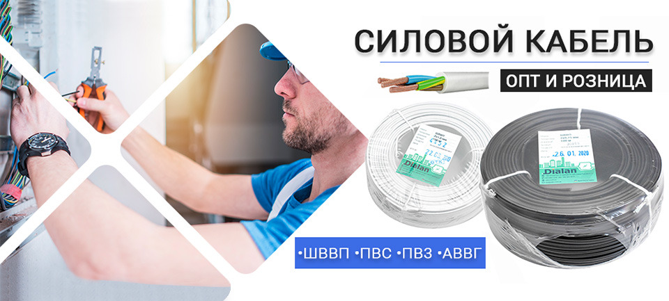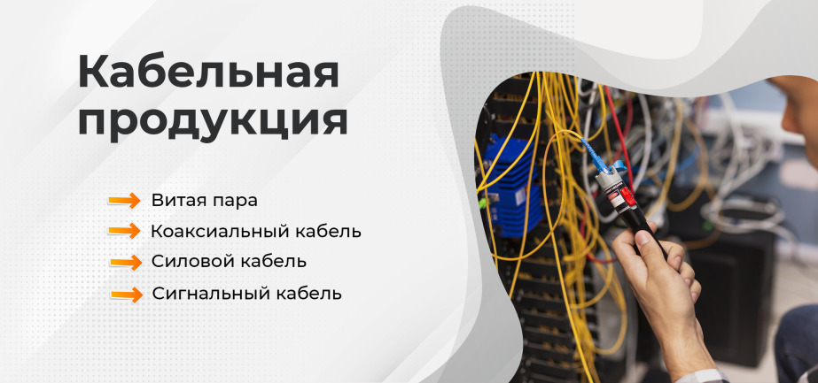 - Кабели силовые, коаксиальные, акустические и витая пара;