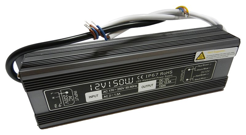 Блок питания DC12V 150W AC170V-250V IP68, 12,50 А (гермо корпус)