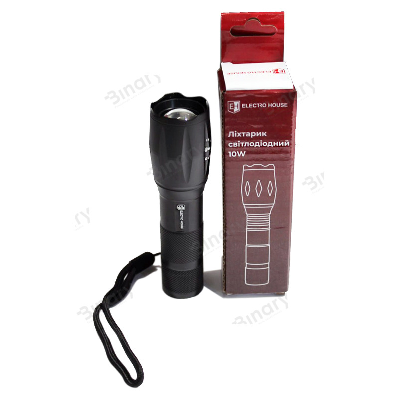 Светодиодный ручной фонарик мощностью 10 Вт EH EH-FL-10W от бренда Electro House — это надежный и яркий аксессуар, который пригодится в самых разных условиях. Он станет отличным выбором для туристов, охотников, рыбаков и всех, кто нуждается в компактном и легком устройстве с влагозащитными и противоударными свойствами. Фонарик имеет размеры 123x34x26 мм и прочный корпус, выполненный из анодированного алюминиевого сплава, с уровнем защиты IP65. Он поддерживает несколько режимов работы: высокий и низкий уровни яркости, а также аварийный режим (SOS). Линза, изготовленная из оптического пластика, обеспечивает качественное распределение света.