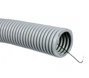 Гофротруба стандарт D 32 мм (25м) (с протяжкой) применяется при монтаже открытой и скрытой электропроводки по стенам, потолкам и полу из негорючих и слабогорючих материалов. Гофротруба создает дополнительную изоляцию кабеля, исключая возможность поражения током при повреждении его изоляции, а также создает защиту от внешних механических воздействий на кабель или провод. Гофрированная труба с протяжкой или зондом означает то, что труба имеет внутри стальную проволоку, которая облегчает протягивание кабеля внутрь трубы. Жесткая (усиленная) гофрированная труба отличается дополнительной прочностью и предназначена для монтажа в цементной стяжке или под заливку бетоном. Трубы легки и удобны при транспортировке и работе с ними, не требуют сложной резки, не нуждаются в заземлении, не подвержены коррозии. Гофротруба стандарт D 32 мм (25м) (с протяжкой) упакована в небольшие бухты по 25м