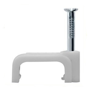 Кабельная клипса плоская 4*4,4 мм предназаначена для прокладки кабеля и проводов. Материал скобы: Полипропилен (PP) - твёрдый (стоек к истиранию), термостойкий, не подвергается коррозионному растрескиванию. Материал гвоздя: закаленная сталь. Віполнена в белом цвете. Рабочая температура: от - 5°С до + 140°С. Плоская скоба (клипса) эффективно удерживает плоские провода и кабельные изделия ленточного типа. Монтаж с её помощью упорядочивает трассировку плоских проводников, гарантирует их прочное крепление к поверхности.
