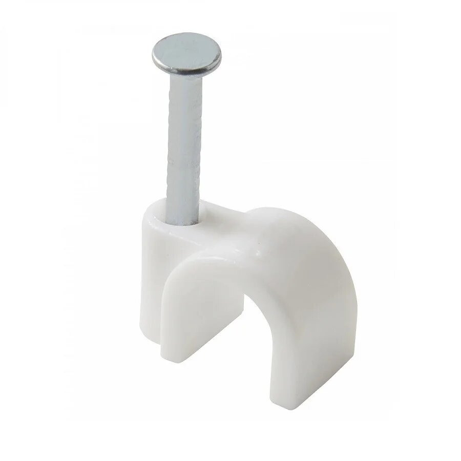 Кабельная клипса круглая предназначена для прокладки кабеля и проводов. Материал скобы: Полипропилен (PP) - твердый (стойкий к истиранию), термостойкий, не поддающийся коррозионному растрескиванию. Материал гвоздя: закаленная сталь.