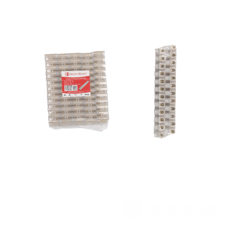 Клеммная колодка 15A 12mm2 ПЭ EH-CPE-0004n от производителя качественной электропродукции ElectroHouse применяется для электросоединения медных и алюминиевых электропроводов между собой. Представляет собой двенадцать контактных пар, в которых содержатся латунные электроконтакты с закручивающими винтами в корпусе из негорючего полиэтилена. Можно ее разъединять попарно и пользоваться ею при установке проводов для подключения электросети, освещения и т. д. Способна вынести очень много внешних воздействий, таких как температурные изменения, погодные условия, солнечные излучения, влияния растворителей, щелочи, масел и т. д. Обеспечит вам гарантированное быстрое хорошее крепление кабелей, при этом имеется возможность безопасно соединить алюминий с медью. Приобрести клеммную колодку 15A 12mm2 ПЭ EH-CPE-0004 от известного бренда ElectroHouse вы сможете по недорогой и приятной для вас стоимости у нас на сайте.
