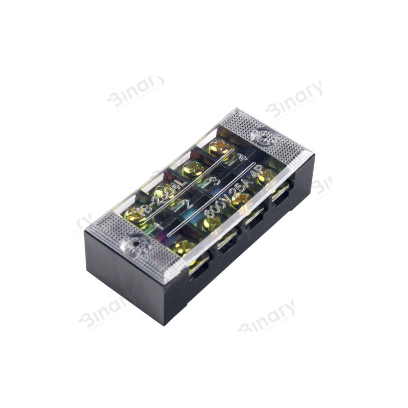 Клеммная колодка в корпусе EH-T-2504 от компании "ElectroHouse" предназначена для удобства монтажа электрических проводов в цепях управления, сигнализации, освещения и так далее. одного. Планки изготавливаются из луженой латуни. Контактные планки зажимов рассчитаны на пропускание больших токов в сетях переменного тока частотой 50 Гц. Эта модель клеммной колодки в корпусе имеет четыре клеммных пара с винтовым зажимом проволоки, ее номинальный ток 25А. Позволяет соединить медные и алюминиевые провода. Так же эта модель отличается высокой надежностью, долговечностью и имеет широкий температурный диапазон – она способна работать при температуре от – 10 до +80 градусов Цельсия. Соответствует мировым и европейским стандартам качества. Прозрачная крышка не только служит защитой, но и позволяет визуально контролировать состояние контактов, что очень удобно. Винтовой зажим позволяет получить надежный контакт без использования специального оборудования (паяльник, пресс-клещи и т.д.). Некоторые типы клеммных зажимов являются одноразовыми, например пружинные (самозажимные), но винтовой зажим позволяет использовать это устройство многократно. Таким образом, эта модель является не только надежной, но еще и экономичной. Выполнить монтаж проводов в это изделие просто и быстро.