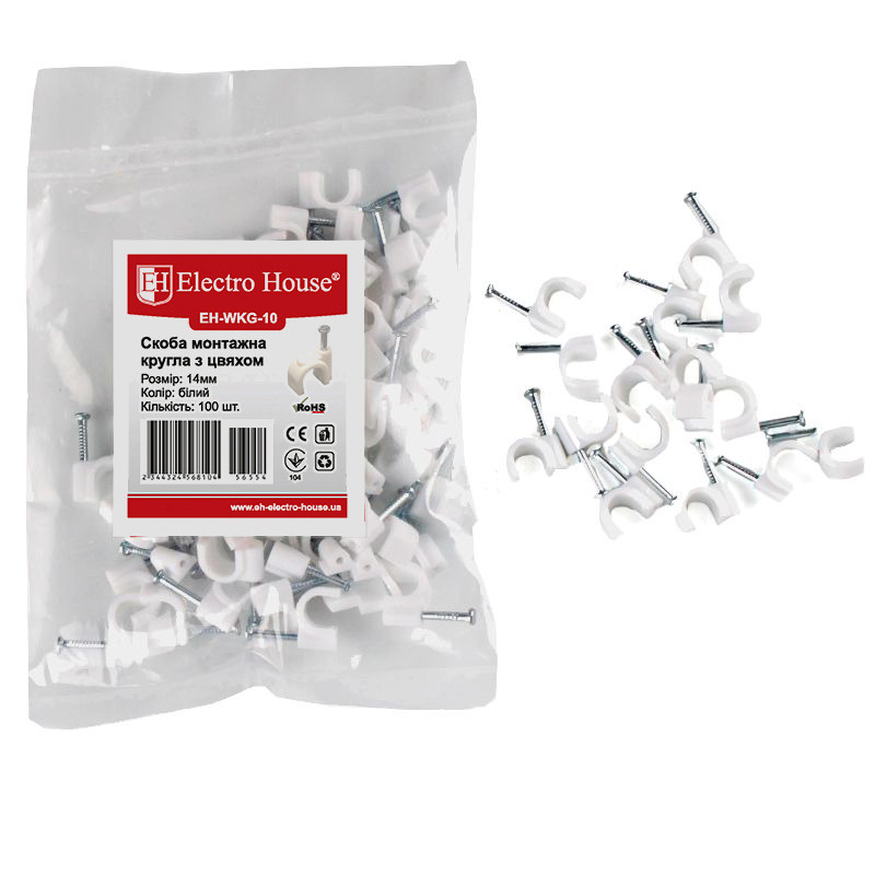 Клипса с гвоздем 14 мм EH-WKG-10 от производителя ElectroHouse является самым надежным и простым в использовании крепежным элементом. Применяется для крепления электропроводов к ровной плоскости. Может использоваться при протягивании или разветвлении новой ветки проводов в электросети или для подключения к стационарному оборудованию. Данное изделие дает возможность быстро проводить разные электромонтажные работы, связанные с проводкой. Изготовлена из комбинации двух высококачественных материалов - огнестойкого пластификатора и антикоррозионной стали. По качеству отвечает требованиям международных стандартов. При эксплуатации проявляет самые высокие износостойкие свойства, поэтому имеет длительный срок службы. Клипса с гвоздем 14 мм EH-WKG-10 от украинского бренда ElectroHouse дает возможность выполнить быстро и надежно монтаж электрокабельной линии.