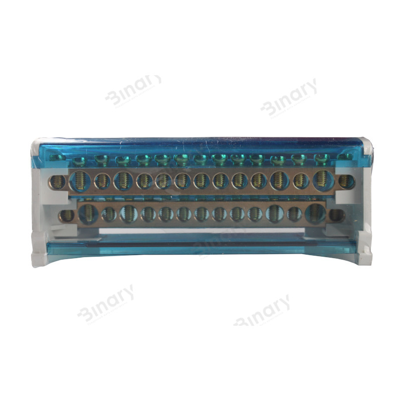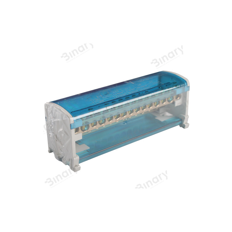 Шина нулевая в корпусе (Кросс-модуль 4х15 125 A) EH-BNS4X15 от компании "Electro House" предназначена для электрического и механического соединения нулевых, защитных и фазных проводников. Она имеет корпус из термостойкого самозатухающего пластика, в котором размещены нулевые шины изолированные друг от друга перегородками и откидную крышку из прозрачного пластика, которая позволяет визуально контролировать качество соединения проводов, а так же предотвращает случайное попадание посторонних предметов. Так же крышка дает защиту от случайного прикосновения к токоведущим частям модуля. Кросс-модуль имеет современный эстетичный вид и компактные размеры. Благодаря использованию этого устройства разводка кабелей в электрощите или электрошкафу станет не только более безопасной и компактной, но и приобретет более эстетический вид. Благодаря наглядности распределения кабелей, которую дает кросс-модуль, ремонтные или монтажные работы будут занимать гораздо меньше времени. Шина нулевая в корпусе имеет крепление для установки на DIN рейку, что позволяет установить его в течение нескольких секунд. Проволоки фиксируются в нулевой шине с помощью винтов, что делает соединение надежным и позволяет использовать это устройство многократно. Благодаря конструктивным особенностям кросс-модуль можно использовать и в качестве переходного клеммника для кабеля большего сечения, если необходимо подключить несколько кабелей меньшего сечения, что практично и удобно. Эта модель кросс-модуля состоит из четырех нулевых шин, каждая из которых содержит по 15 кабельных выводов. Диаметр кабельных выводов: 2х 8,5 мм, 2х7, 5 и 11х6 мм для каждой шины. Ее номинальный ток – 125А. Рабочая температура для этого изделия от – 40 до 50оС при среднем значении относительной влажности не более 90%. Сечение подключаемых проводников 2,5 – 16 мм2 . Имеет класс защиты IP20. Для длительной и надежной эксплуатации нулевой шины окружающий воздух не должен быть засорен парами солей, коррозионными или зажигающими газами.