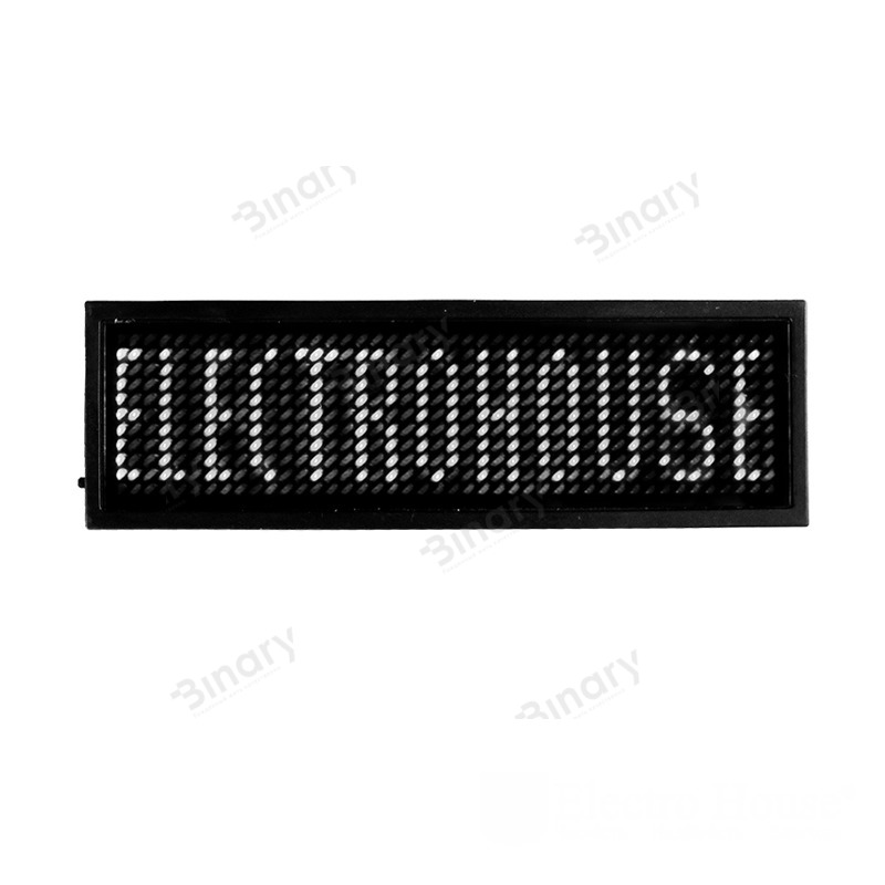 Электронный Led бейдж, белый EH-BL-003 торговой марки ElectroHouse – это светодиодное устройсво, позволяющее выводить на информационное табло сообщения длиной до 256 символов. Бейдж имеет габариты 90х30х6 мм и вес всего 32 гр, экран - 44 х 11 точек, цвет выводимого светодиодного текста - белый.