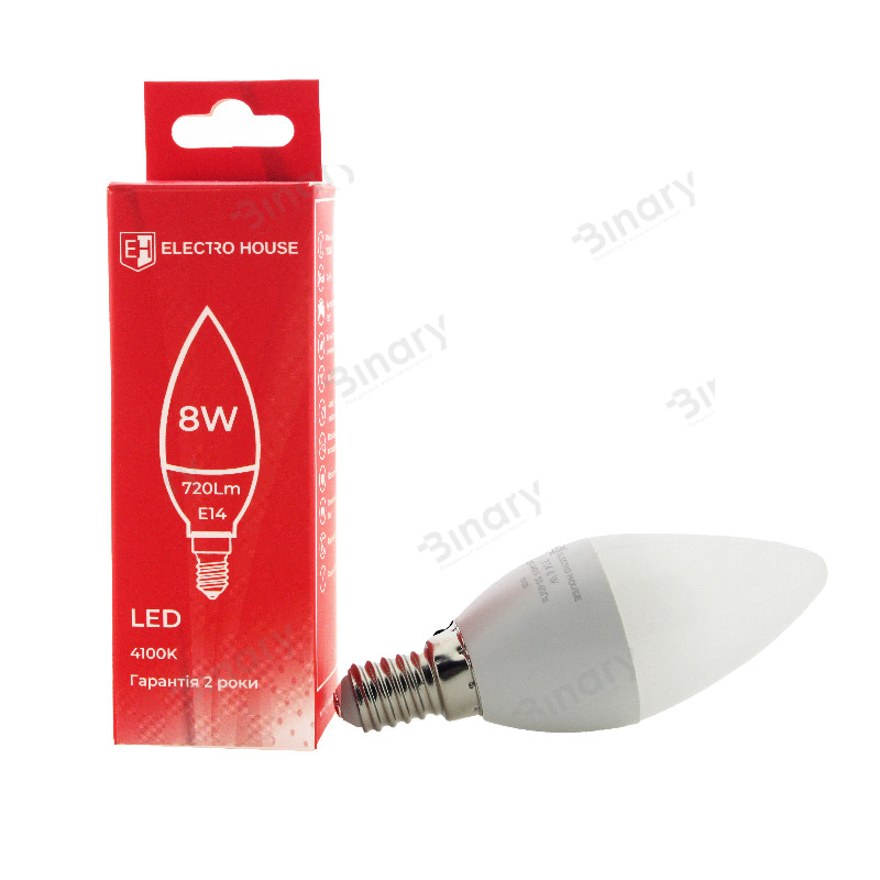 LED лампа свеча E14 8 Вт 4100К EH-LMP-1253 от торговой марки ElectroHouse применяется в осветительных приборах с так называемым «мини» - цоколем диаметром 14 мм. Лампа имеет вытянутую свечеобразную форму с максимальным диаметром 37 мм, что позволяет использовать ее в узких плафонах люстр, светильников и бра. Данная светодиодная лампа позволяет заменить лампу накаливания мощностью 80 Вт, при этом потребляя в 10 раз меньше электроэнергии. Дает более мощный световой поток и служит в несколько раз дольше лампы накаливания – до 50000 часов. Кроме этого, данная LED лампа устойчива к механическим воздействиям, пожаробезопасна, экологически чиста и универсальна с точки зрения предъявляемых требований к температуре и влажности помещений, в которых будет эксплуатироваться. Светодиодная лампа свеча Е14 8W EH-LMP-1253 от компании Electro House позволяет осветить помещение белым нейтральным светом, не слишком ярким и комфортным для восприятия. Это лучший выбор для тех, кто любит покупать качественный товар по оптимальной цене в соответствии с соотношением цена – качество - экономия.