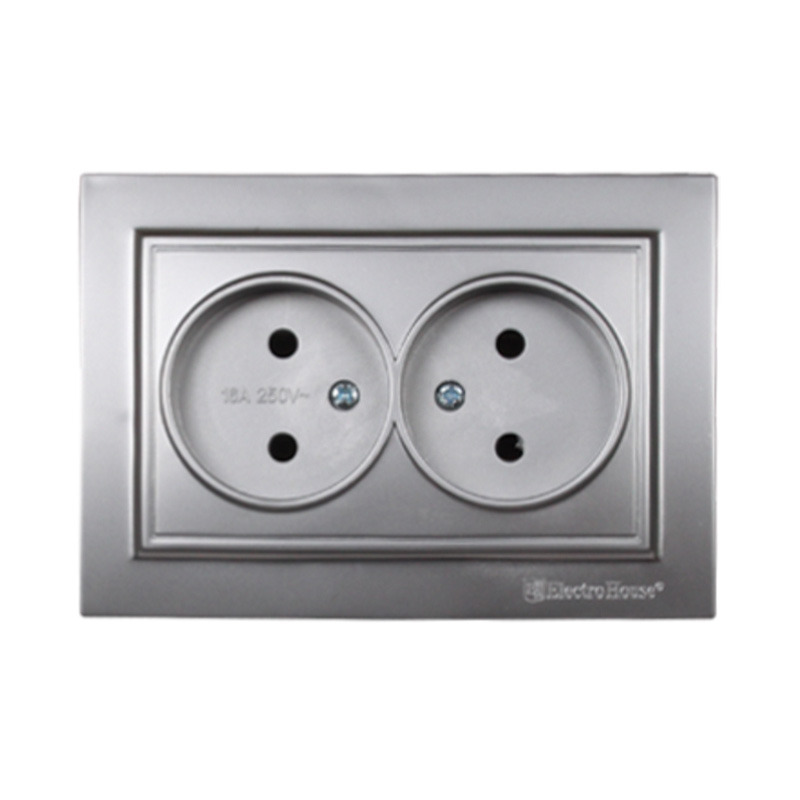 Розетка двойная без заземления Термопластик 16 А {122} Серебряный камень