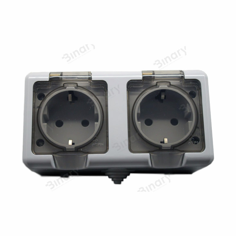 Розетка двойная с заземлением и крышкой IP54 Серый