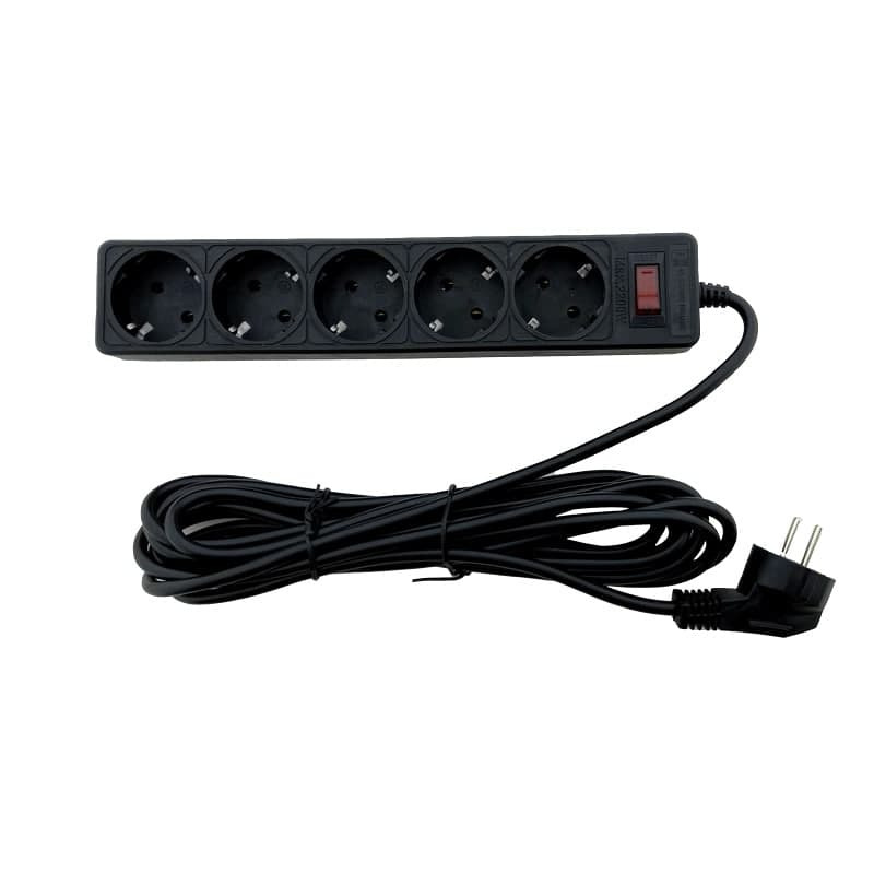 Сетевой фильтр 5 гнезд с заземлением, 5 м Черный