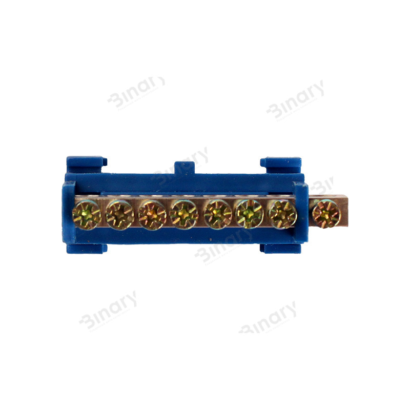 Шина нулевая 8 отверстий На DIN рейку EH-BN-8 от компании Electro House предназначена для электрического и механического соединения нулевых, защитных и фазных проводников. Она имеет специальный крепеж для установки на DIN рейку, который одновременно является для него изолятором. Это изделие отличается высоким качеством, надежностью и долговечностью. Соответствует мировым и европейским стандартам качества. На сегодняшний день просто невозможно представить сборку электрощита без применения подобных устройств. Ведь использование этого изделия существенно облегчит работу электриков и сделает его более безопасным. Если ранее надежная и безотказная работа УЗО обеспечивалась установкой отдельно взятых нулевых шин к каждому отдельно взятому устройству защитного отключения, то теперь можно подвести общую нулевую проволоку к шине и уже из нее развести от созданного таким образом блока к другим составным частям созданной системы. Благодаря этому увеличивается надежность и сохранность всей системы в целом. Крепится нулевая шина на DIN рейку с помощью щеколд и не требует для установки дополнительных материалов и специальных инструментов, а компактность увеличивает удобство дальнейшего ее использования. Также она имеет современный эстетический внешний вид. Конструктивно эта модель является токопроводящей жилой в изолирующем креплении из самозатухающего пластика. Токопроводящая жила изготовлена из электротехнической латуни и включает в себя отверстия с зажимными винтами для крепления в ней проводников (восемь кабельных выводов) и имеет сечение 6х9 мм. Номинальный ток для этой модели – 100А. Ее размеры 6х9х58 мм. Длина крепежа 50 мм. Ширина крепежа 21 мм. Диаметр отверстия для монтажа проводника – 5 мм. Рабочая температура для данного изделия от -40 до 50°С при среднем значении относительной влажности не более 90. Для длительной и надежной эксплуатации этого изделия окружающий воздух не должен быть засорен парами солей, коррозионными или зажигающими газами. Для обеспечения качественного соединения, а также упрощения дальнейшего обслуживания, шина выполнена единственным токопроводящим элементом. Ее монтаж прост и не занимает много времени.