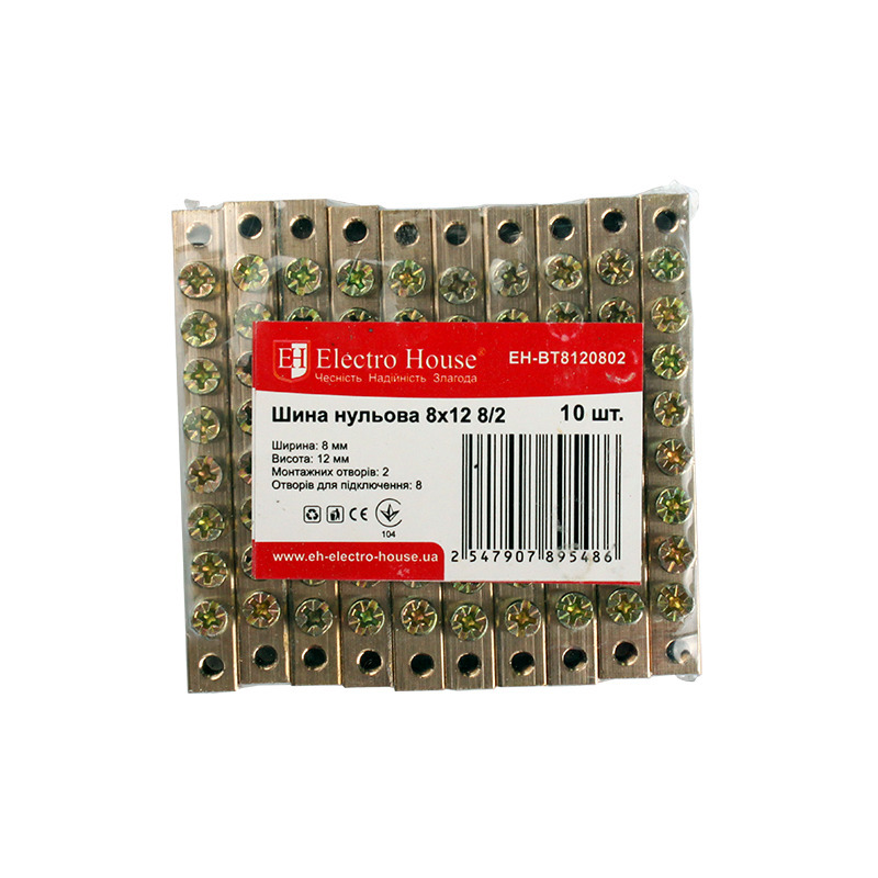 Шина нулевая 8х12 8/2 EH-BT8120802 от компании "ElectroHouse" предназначена для электрического и механического соединения нулевых, защитных и фазных проводников. Она имеет два отверстия для установки по краям шины. Устанавливается на изолятор. Это изделие отличается высоким качеством, надежностью и долговечностью. Соответствует мировым и европейским стандартам качества.На сегодняшний день просто невозможно представить сборку электрощита без применения подобных устройств. Ведь использование этого изделия существенно облегчит работу электриков и сделает ее более безопасной. Если раньше надежная и безотказная работа УЗО обеспечивалась установкой отдельно взятых нулевых шин к каждому отдельно взятому устройству защитного отключения, то теперь можно подвести общий нулевой провод к шине и уже с нее развести от созданного таким образом блока к прочим составным частям созданной системы. Благодаря этому повышается надежность и безопасность всей системы в целом.Конструктивно эта модель представляет собой токопроводящую жилу без изоляции. Токопроводящая жила изготовлена из электротехнической латуни и содержит в себе отверстия с зажимными винтами для крепления в ней проводников (8 кабельных выводов) и имеет ширину 8 мм и высоту 12 мм . Диаметр отверстий для монтажа проводников 6 мм. Номинальное напряжение для этой модели - 400В. Номинальный ток - 125А. Рабочая температура для этого изделия от -40 до 50оС при среднем значении относительной влажности не более 90%. Для длительной и надежной эксплуатации окружающий воздух не должен быть засорен парами солей, коррозионными или воспламеняющими газами. Для обеспечения качественного соединения, а также упрощения дальнейшего обслуживания, шина выполнена единым токопроводящим элементом. Ее монтаж прост и не занимает много времени.