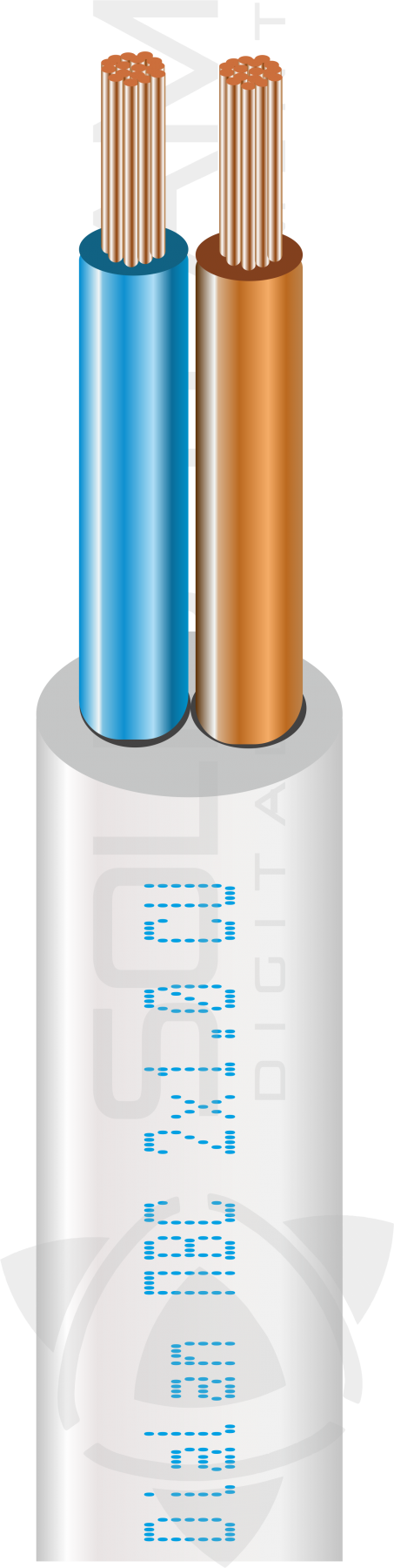 Изолированные жилы двухжильных проводов допускается скручивать вокруг сердечника. Промежутки между жилами в оболочке заполнены, что придает проводам округлую форму.
