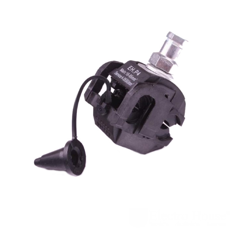 Прокалывающий зажим EH-P.4 производства компании ElectroHouse. Служит для подсоединения медных и армированных проводов или ответвления одного провода от основной магистрали. В устройстве применяется нержавеющая сталь и полимеры которые не подвержены воздействию солнечного ультрафиолетового излучения. Благодаря химическим свойствам составляющих природные факторы не будут негативно сказываться на состоянии EH-P.4. Соединение обеспечивает надежную герметичность и не боится влаги. При помощи шестигранного ключа осуществляется стяжка затяжного болта и производится фиксация кабеля. Особенность конструкции зубцов дает возможность проникнуть сквозь изоляцию проводника и осуществить контакт с материалом жилы. Монтаж можно проводить без обесточивания линий электропередач.