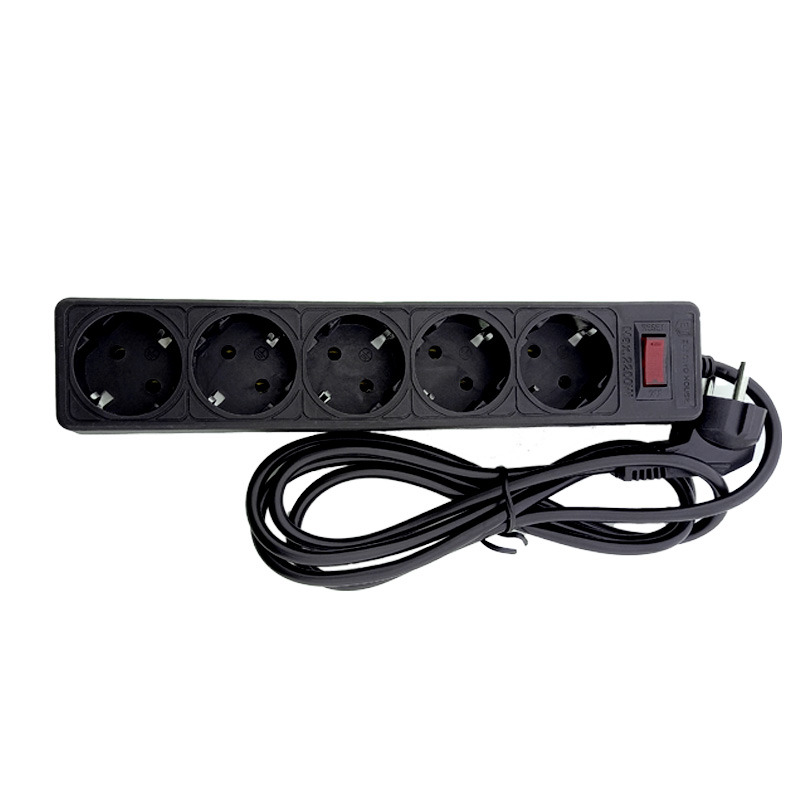 Мережевий фільтр 5 гнізд із заземленням, 2 м Чорний
