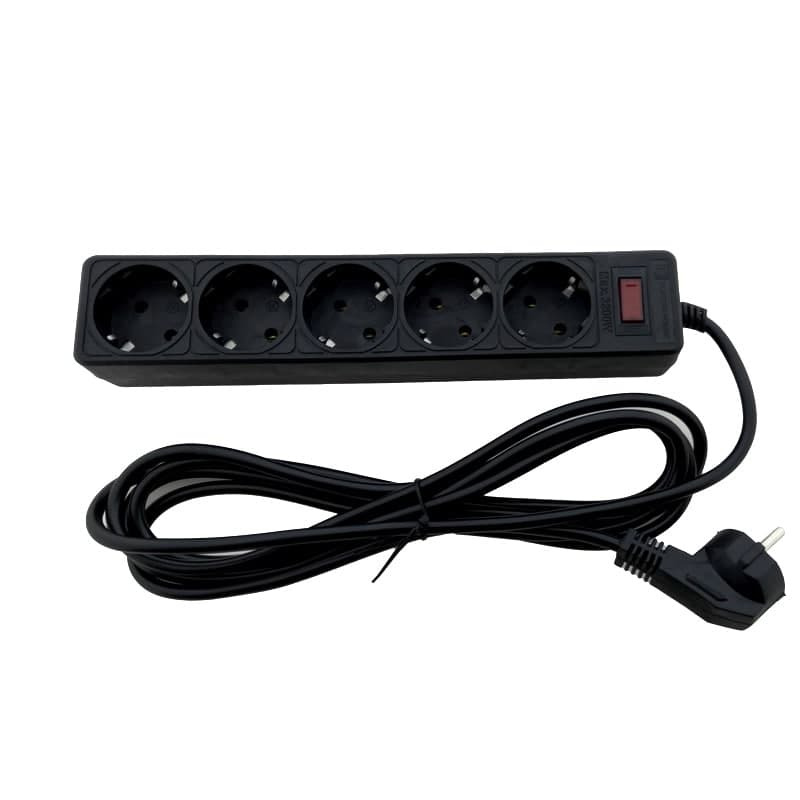 Мережевий фільтр 5 гнізд із заземленням, 3 м Чорний