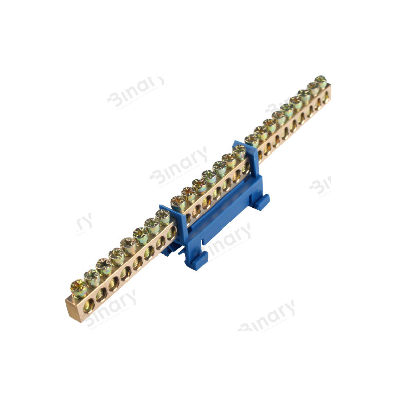 Шина нульова 24 отвори На DIN рейку EH-BN-24 від компанії Electro House призначена для електричного і механічного зєднання нульових, захисних і фазних провідників. Вона має спеціальне кріплення для установки на DIN рейку, яке одночасно є для неї ізолятором. Цей виріб відрізняється високою якістю, надійністю і довговічністю. Відповідає світовим і європейським стандартам якості. На сьогодні просто неможливо представити збірку електрощита без застосування подібних пристроїв. Адже використання цього виробу істотно полегшить роботу електриків і зробить її безпечнішою. Якщо раніше надійна і безвідмовна робота ПЗВ забезпечувалася установкою окремо взятих нульових шин до кожного окремо взятого пристрою захисного відключення, то тепер можна підвести загальний нульовий дріт до шини і вже з неї розвести від створеного таким чином блоку до інших складових частин створеної системи. Завдяки цьому підвищується надійність і безпека усієї системи в цілому. Кріпиться нульова шина на DIN рейку за допомогою клямок і не вимагає для установки додаткових матеріалів і спеціальних інструментів, а компактність збільшує зручність подальшого її використання. Так само вона має сучасний естетичний зовнішній вигляд. Конструктивно ця модель є струмопровідною жилою в ізолюючому кріпленні з самозатухаючого пластику. Струмопровідна жила виготовлена з електротехнічної латуні і містить в собі отвори із затискними гвинтами для кріплення в ній провідників (двадцять чотири кабельні виводи) і має переріз 6х9 мм. Номінальний струм для цієї моделі - 100 А. Її розміри 6х9х165 мм. Довжина кріплення 50 мм. Ширина кріплення 21 мм. Діаметр отвору для монтажу провідника - 5 мм. Робоча температура для цього виробу від - 40 до 50оС при середньому значенні відносної вологості не більше 90. Для тривалої і надійної експлуатації цього виробу навколишнє повітря не має бути засмічене парами солей, корозійними або запалюючими газами. Для забезпечення якісного зєднання, а також спрощення подальшого обслуговування, шина виконана єдиним струмопровідним елементом. Її монтаж простий і не займає багато часу.