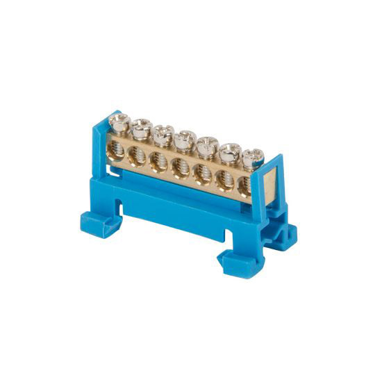 Шина нульова 7 отворів на DIN рейку призначена для електричного і механічного з'єднання нульових, захисних і фазних провідників. Вона має спеціальне кріплення для установки на DIN рейку, яке одночасно є для неї ізолятором. Цей виріб відрізняється високою якістю, надійністю і довговічністю