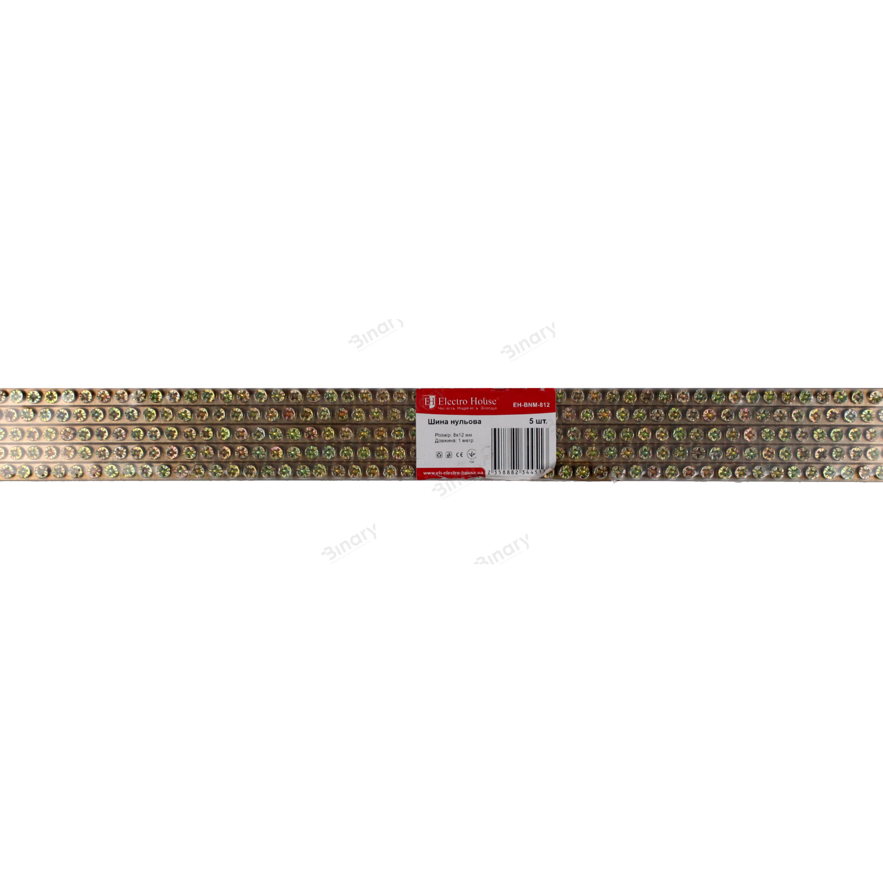 Шина нульова 8х12 мм² 1 м EH-BNM-812 від компанії "Electro House" призначена для електричного і механічного з'єднання нульових, захисних і фазних провідників. Встановлюється на ізолятор. Цей виріб відрізняється високою якістю, надійністю і довговічністю. Відповідає світовим і європейським стандартам якості. На сьогодні просто неможливо представити збірку електрощита без застосування подібних пристроїв. Адже використання цього виробу істотно полегшить роботу електриків і зробить її безпечнішою. Якщо раніше надійна і безвідмовна робота ПЗВ забезпечувалася установкою окремо взятих нульових шин до кожного окремо взятого пристрою захисного відключення, то тепер можна підвести загальний нульовий дріт до шини і вже з неї розвести від створеного таким чином блоку до інших складових частин створеної системи. Завдяки цьому підвищується надійність і безпека усієї системи в цілому. Конструктивно ця модель є струмопровідною жилою без ізоляції. Струмопровідна жила виготовлена з електротехнічної латуні і містить в собі отвори із затискними гвинтами для кріплення в ній провідників і має ширину 8 мм і висоту 12 мм. Містить 132 отвори для кріплення дротів. Діаметр отворів для монтажу провідників 6 мм. Через кожні п'ять отворів для кріплення дротів вона має наскрізний отвір для кріплення на ізолятор. Номінальна напруга для цієї моделі - 400В. Номінальний струм - 125А. Робоча температура для цього виробу від -40 до 50°С при середньому значенні відносної вологості не більше 90%. Для тривалої і надійної експлуатації навколишнє повітря не має бути засмічене парами солей, корозійними або запалюючими газами. Для забезпечення якісного з'єднання, а також спрощення подальшого обслуговування, шина виконана єдиним струмопровідним елементом. Її монтаж простий і не займає багато часу.