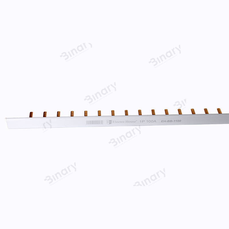 Шина з'єднувальна (гребінка) PIN 1 P 100 A 1.4*7 EH-BB-1100 від компанії Electro House використовується для підключення автоматичних вимикачів, ПЗВ, диф-автоматів і інших пристроїв. Вона призначена для подання напруги певних фаз і полюсів до пристроїв захисту шляхом їх паралельного підключення. Тобто є заміною саморобних перемичок з монтажного дроту. Найбільш доцільне її застосування у великих розподільних щитах. Вона є простим в застосуванні і дуже надійним пристроєм. Відрізняється довговічністю і відповідає світовим і європейським стандартам якості. Звичайно можна по-старому використати для зєднання перемички з монтажного дроту, але цей спосіб має ряд істотних недоліків - перемички частенько заважають підключати електроустаткування, що знаходиться на DIN -рейці рівнем вище, зайві дроти в електрощиті виглядають не лише не естетично, але і частенько заважають закриттю кришки, монтаж триваліший і трудомісткий (адже треба виміряти і нарізувати дроти по довжині, вигнути, зачистити, вибрати наконечник, опресувати за допомогою прес-кліщів і так далі) При монтажі з використанням зєднувальної шини (гребінки) цих недоліків немає, зате є ряд переваг - якісніше зєднання (якщо підключення перемичок представлене двома кінцями дроту в одному затиску, то застосування гребінки скорочує це значення в 2 рази, що позитивно позначається на якості контакту), практично виключається перегрівання контактних майданчиків і пов’язані з цим проблеми, в щитку скорочується кількість дротів, що робить розводку більше надійною, акуратною , швидкий і легкий монтаж з яким впорається практично будь-яка людина. Конструктивно є цілісною мідною пластиною в пластиковій ізоляції з тими, що відходять від неї штирями. Пластина і штирі є єдиною конструкцією без зєднань. Ця модель шини гребінки - однополюсна, номінальний струм для цього пристрою - 100А. Кількість ввідних провідників - 54. Товщина провідника 2 мм, і ширина - 4 мм. Вона призначена для роботи при температурі від - 60 до + 60оС і середньому значенні вологості не більше 90%. Довжина цього пристрою - 1 м. Штирі розташовані з кроком 18 мм. Максимальна кількість модулів, що підключаються, - 54.