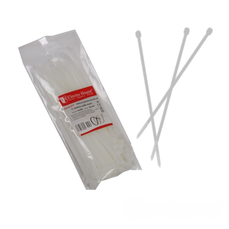 Стягування кабельне біле 5×200 EH - K - 011 від торгової марки ElectroHouse, по своєму основному призначенню, потрібне для стягання електропроводів і зв'язування їх в пучки, але його можливо застосовувати і при інших монтажних роботах. Хомут пластиковий вважається найпростішим і надійнішим виробом, за допомогою якого можна зафіксувати різні деталі, і навіть зробити маркіровку. Має широке застосування у виробничій сфері, а також в побуті, господарстві, будівництві і так далі. Робиться хомут стяжний з якісного матеріалу - нейлону, що відрізняється своїми високими гнучкими, міцними, термостійкими і зносостійкими властивостями. Завдяки чому може прослужити досить тривалий час. Переносить багато зовнішніх дій, у тому числі температурні перепади, вібрації, механічні навантаження. Також здатний винести атмосферні опади, тому можна використовувати на вулиці.