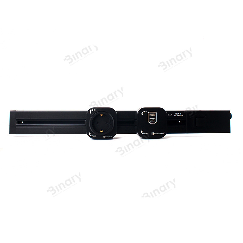 Рейка EH-PT-2B серії Unique Elegance від компанії ElectroHouse призначена для швидкого монтажу трекової електрофурнітури. Шина дозволяє в лічені секунди встановити, або зняти пристрій. Так само можна пересувати по ній пристрою, домагаючись певного позиціонування. Рейки дозволяє монтувати одне, два, три і більше пристрою в потрібній послідовності, що є перевагою трекових систем. Це пристрій може бути застосоване як в офісі або на виробництві, так і в побуті. Такий шинопровод може стати відмінною заміною подовжувач - це пристрій має всі переваги подовжувачів і позбавлений їх недоліків. Адже при його використанні немає необхідності в прокладанні шнура і є можливість використовувати рівно стільки розеток і освітлювальних приладів, скільки потрібно - можна додати потрібну кількість пристроїв, або ж моментально демонтувати невикористовувані. Конструктивно являє собою П-подібний профіль з проходять уздовж нього струмопровідними шинами. Довжина рейки 2 м. Пристрій має вбудований автоматичний вимикач і кнопку розблокування в правій частині вироби. Кнопка розблокування призначена для монтажу / демонтажу трекових пристроїв і запобігає їх випадкове зрушення уздовж рейки. Завдяки цьому пристрій є безпечним, надійним і довговічним. Виріб володіє ергономічним мінімалістичним дизайном стилю хай-тек і має чудовий колір Pandora Black. Воно вигідно підкреслить дизайн практично будь-якого інтер'єру. Монтаж цього пристрою простий і не зажадає великих витрат сил і часу. Цей пристрій має клас захисту IP40.
