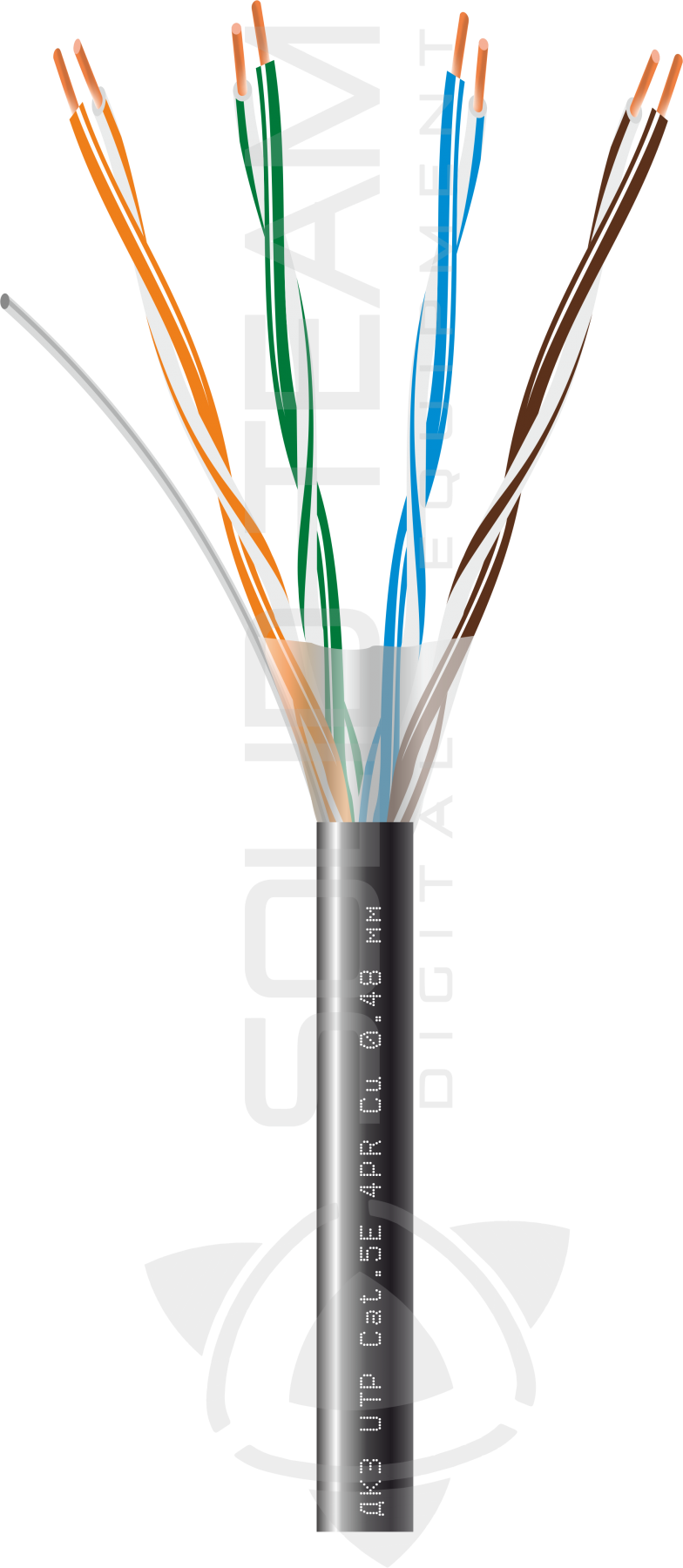 Вита пара ДКЗ UTP Cat.5Е 4PR Cu 0.48 мм PE Outdoor 305 м. (З дротом) - кабель витої пари призначений для прокладки мережі поза приміщеннями. Складається з 4 пар, що проводить жила - мідний дріт, категорія Cat.5e, UTP - без захисного екрану.