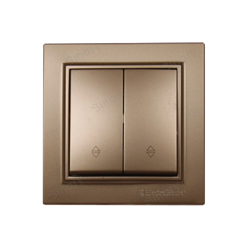 Вимикач прохідний EH - 2187 - LG серії Enzo компанії ElectroHouse забарвлений в розкішно золотий колір і добре підійде для великих приміщень. Він стане стильним доповненням до Вашого інтер'єру, будь він розкішним або строгим, а також вимикач має дві клавіші, а значить дозволить управляти двома джерелами освітлення або аналогічними пристроями з декількох незалежних місць одночасно.